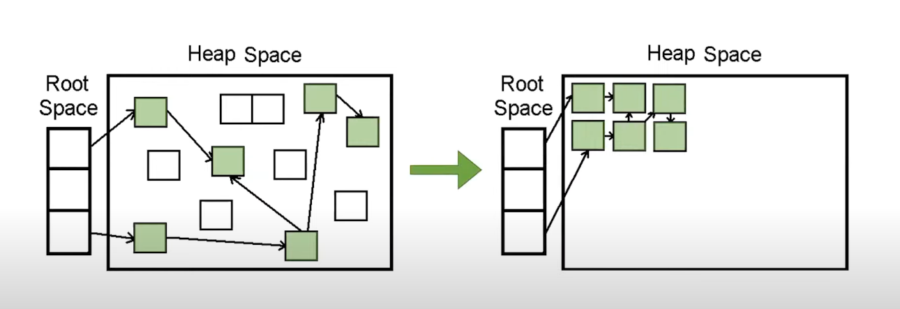 - 단점, 메모리와 CPU를 많이 사용하고, Mark-And-Sweep과정 이후 메모리 파편화를 해결하는 Compaction이 기본적으로 제공되지 않는다.